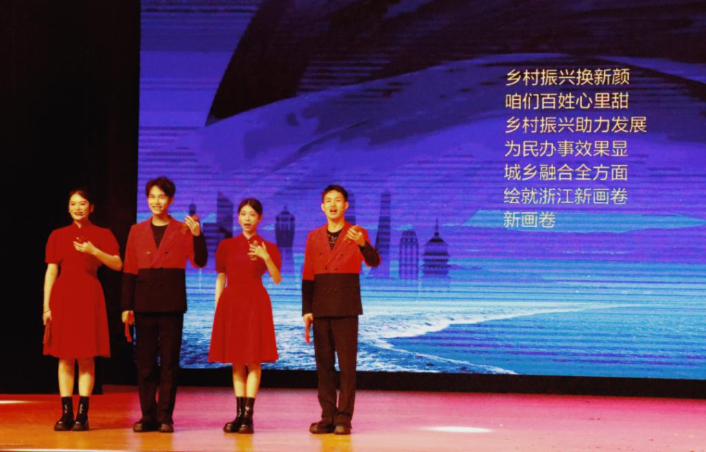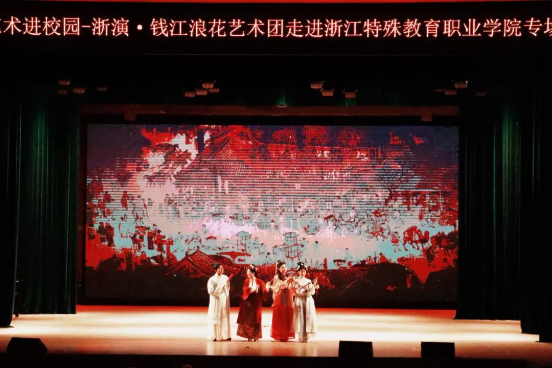 由浙演·钱江浪花艺术团全力打造的《梦启钱江》主题晚会是浙江演艺集团为庆祝党的二十大胜利召开推出的精品剧目之一。整台晚会穿越千年纵贯古今,从流淌的宋韵到奋勇的新时代,串联起一幅幅情景画轴,美轮美奂,让在场的师生们不仅收获了感官上的享受,更将爱国主义教育通过艺术的形式扎根于心。