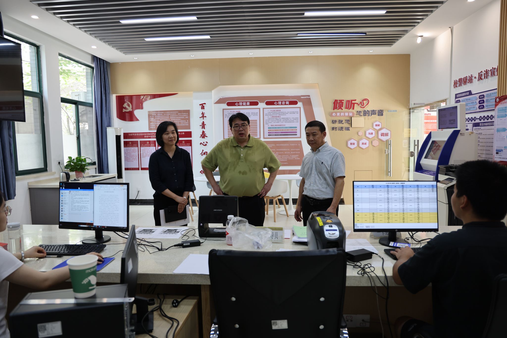 近日,党委书记王飞、党委副书记王涛赴“一站式”学生社区服务中心专题调研试运行情况。我校“一站式”学生社区服务中心自2024年9月竣工以来,组织部、人事处、学工部(团委)、教务处(科研处)、后勤管理处(安全保卫部)、特殊教育资源中心等相关职能部门,辅导员值班室等功能相继入驻,提供一卡通充值、学籍证明打印、师生党员关系转接、反诈宣传、人脸采集、日常打印复印等服务。
