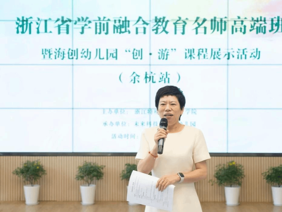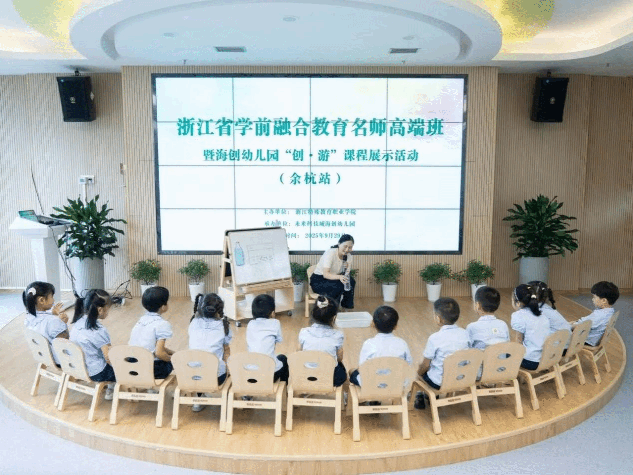 9月29日,由我校主办的浙江省学前融合教育名师高端班暨专业发展共同体第十二期活动在浙江杭州举行。浙江大学博士生导师刘力教授、浙江省特级教师杨蓉、浙江省特殊教育指导中心办公室专职副主任俞念、余杭区教育发展研究学院院长王书立、杭州市余杭区教育局学前教育科科长姚向凡以及浙江省学前融合教育名师高端班的众多专家名师、杨蓉名师工作室成员、浙江特殊教育职业学院特殊教育专业群教师团队和学院实践基地教师代表共100余人参加本次活动。