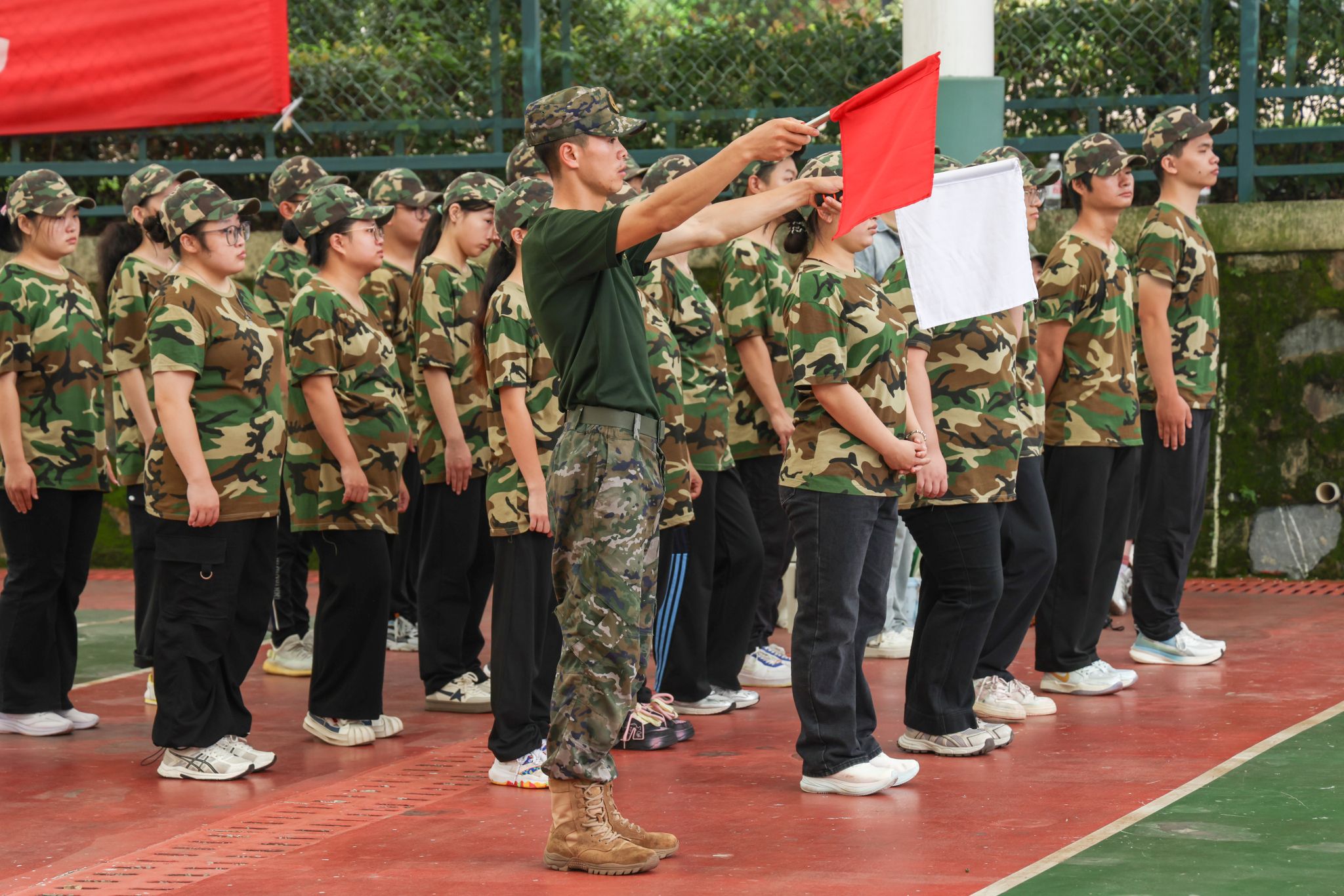 盲生们手挽着手,指尖传递信任,脚步丈量坚持。看不见队列的整齐,便用耳倾听同伴的呼吸,用触觉感知步伐的节奏,每一次“左右左”的口号,都是心与心同频的回响。聋生们目光锁定教官手中的红白旗帜,旗帜的起落是无声的指令。听不到激昂的口号,便用眼神捕捉信号,用汗水校准动作,每一次摆臂、踢腿,都将坚韧刻进每一寸肌肉记忆。肢残生们或许需要借助辅助器械,却从未让热情打折。他们咬紧牙关跟上队伍,背影或许不够挺拔,却比任何人都更接近“不服输”的模样,用行动诠释“残缺从不定义人生”。