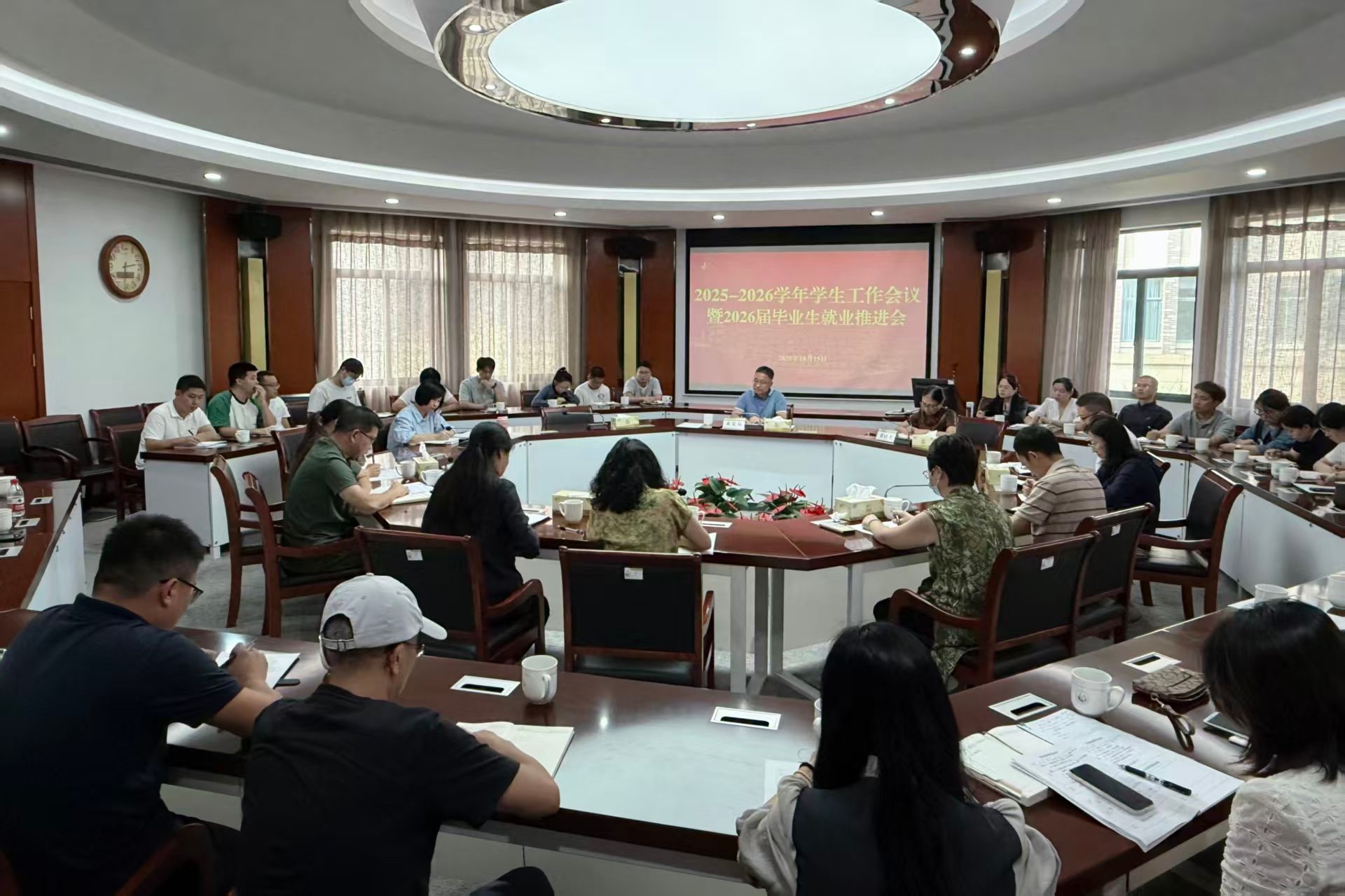 为全面总结开学以来学生工作情况,部署下一阶段重点任务,扎实推进2026届毕业生就业工作,10月15日下午,我校召开2025-2026学年学生工作会议暨2026届毕业生就业工作推进会。院长黄宏伟出席会议,学生工作部、教务处、后勤管理处(安全保卫部)负责人,三系党总支书记、副书记,全体专兼职辅导员参加会议。副院长黄桂美主持会议。