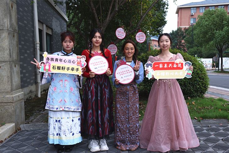 10月21日,“浙里石榴特别红”校园石榴树认领活动在莫卡乡村校内生产性实训基地旁的石榴树下举行。学校党委副书记王涛,党委委员、副院长黄桂美,党委委员、宣传统战部部长兰德军出席活动。身着少数民族节日盛装的少数民族学生代表们、辅导员们齐聚一堂,共同见证这石榴籽般的亲情在特教学院这片土地上生根发芽。活动由学生工作部长(学生处处长)赵晓旭主持。