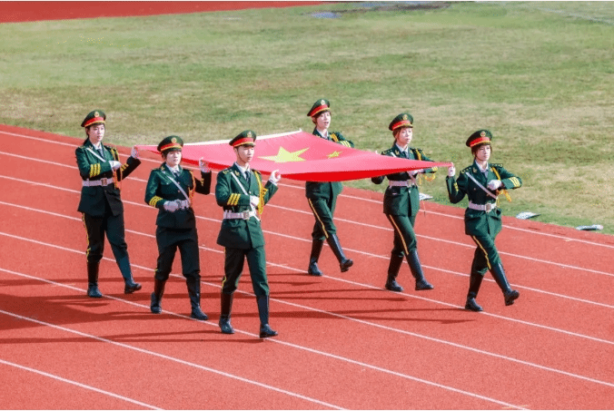 在全场的注目礼中,国旗方阵踏着秋光,昂首而行。那挺拔的身影,是信仰与青春的具象,瞬间点燃了赛场的激情,激励着所有运动员为荣誉与梦想奋力奔跑。
