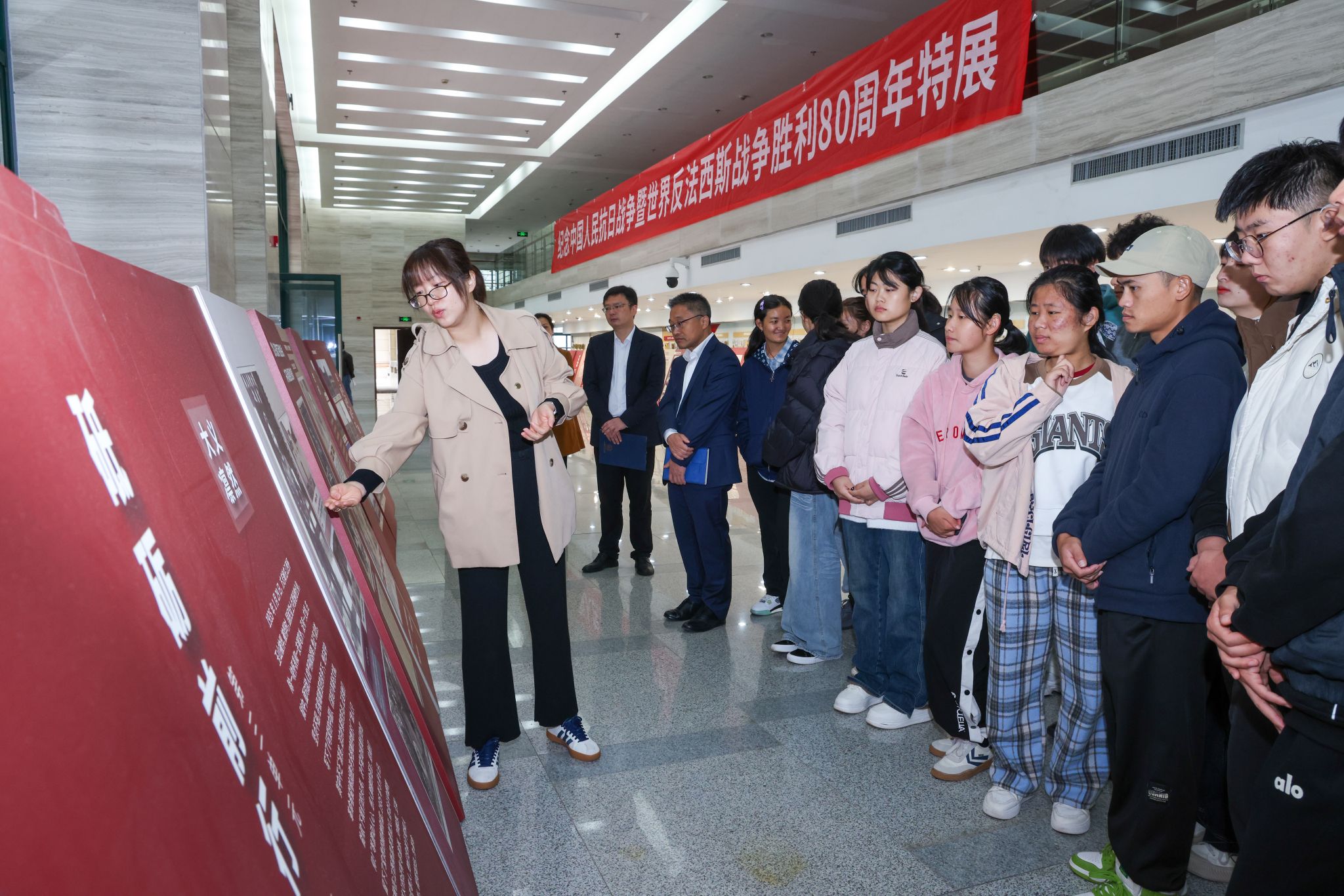 据悉,此次展览将在学生文化活动中心一楼大厅持续展出至11月11日。期间,该“红色课堂”面向全校开放,师生可自主参观,近距离接触和感知红色文化。本次活动作为我校思政课程实践教学的重要载体,纳入“大思政课”教育体系。后续,公共基础学院(马克思主义学院)还将持续开展思政实践教学系列活动,进一步推动红色文化进校园、进课堂、进头脑,切实增强我校青年大学生的历史使命感与社会责任感。