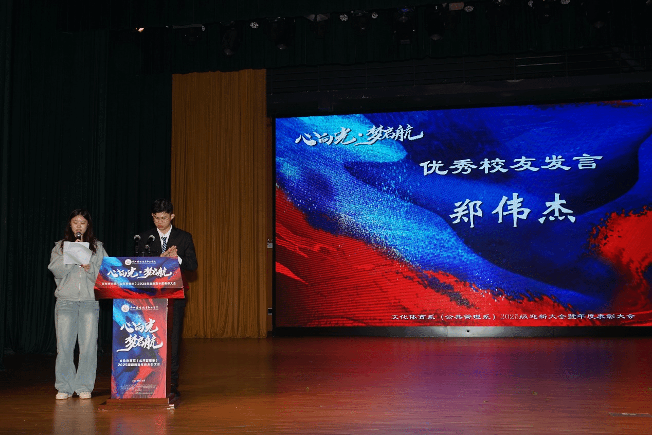 11月5日下午,浙江特殊教育职业学院文化体育系(公共管理系)2025级迎新暨年度表彰大会在校文化体育中心大礼堂举行。本次大会邀请了校党委副书记王涛,校党委委员、副院长黄桂美,校党委委员、副院长曹钢,校党委委员、副院长杨海平,校团委书记朱娜,文化体育系(公共管理系)主任张磊等领导出席,各专业负责人、班主任、辅导员、校友代表、600余名在校生共同参加活动。