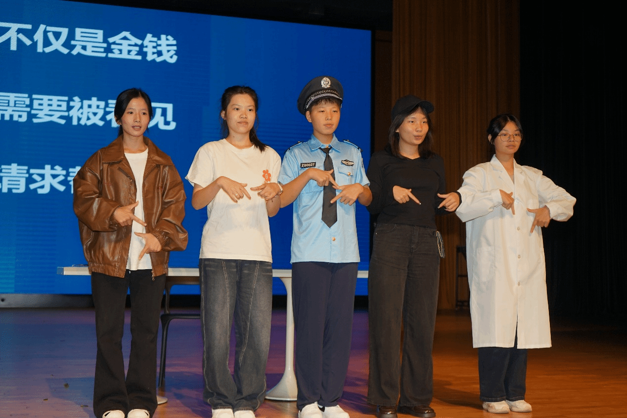 第二篇章——聚焦安全与心理健康。情景短剧《看不见的枷锁》以校园生活为背景,揭示了潜在的心理困扰与应对之道。随后的“健康盲盒”有奖问答环节,师生互动热烈,将安全知识融入趣味问答。