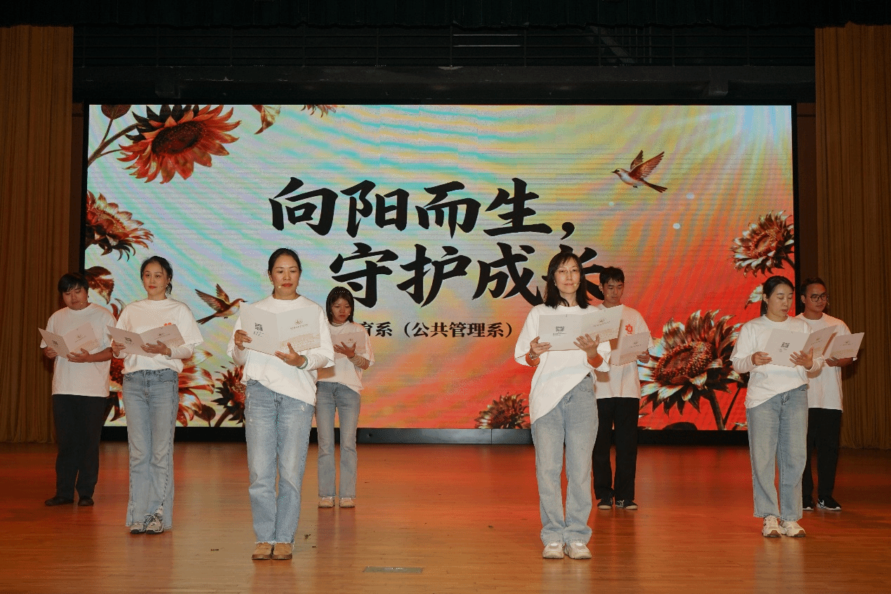 篇章结尾,由系部教师代表带来诗朗诵《向阳而生,守护成长》,传递了师者对学子身心健康的守护与期许。