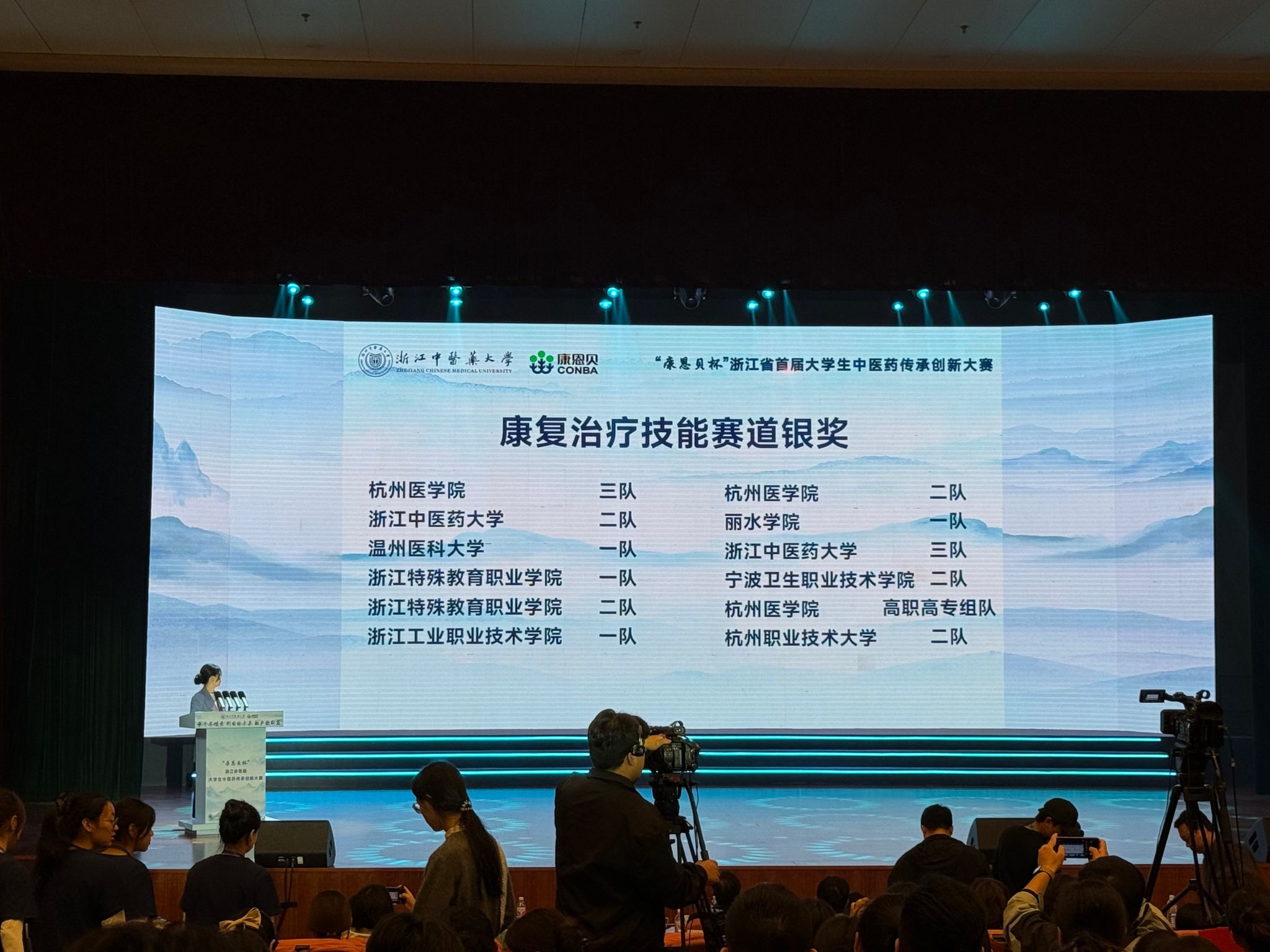 11月7至8日,由浙江省大学生科技竞赛委员会主办的浙江省首届大学生中医药传承创新大赛决赛在浙江中医药大学滨文校区顺利举行。我校康复技术系学子在大赛康复治疗技能赛道的激烈角逐中脱颖而出,以高职高专组最高分的优异表现斩获金奖1项、银奖2项。