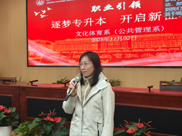 活动伊始,袁玉萍指出,文管系始终将学生成长发展放在首位,此次职业引领活动正是系部响应学子呼声、解决实际需求的重要举措。她强调,学历提升是拓宽个人发展空间、增强核心竞争力的关键途径,鼓励同学树立明确目标,在求学道路上坚定信念、勇克难关。