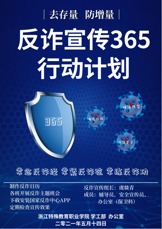 为进一步推进学院反诈宣传工作,学工部与办公室共同开展“反诈宣传365行动计划”,方案如下: